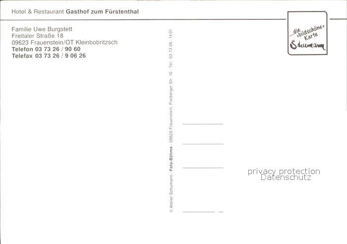 72507894 Kleinbobritzsch Frauenstein Gasthaus zum Fuerstenthal postalisch nicht gelaufen Erhaltung siehe scans KatCode: 11110014177140