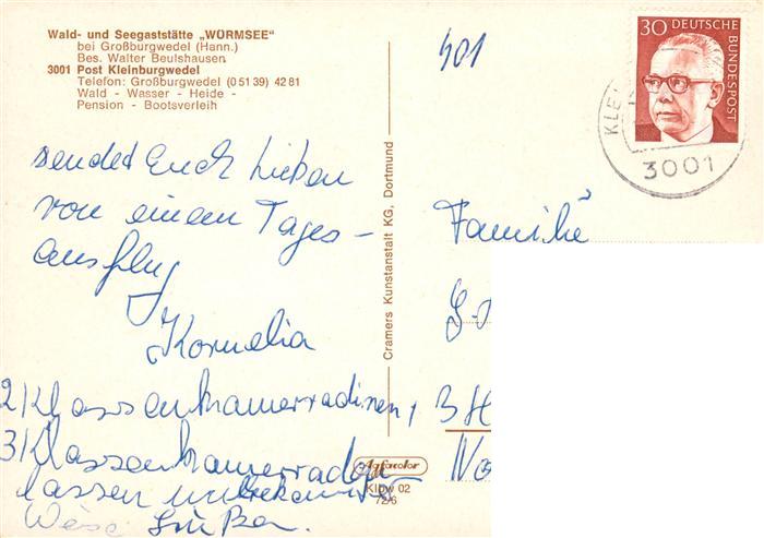 73885544 alte Postkarte Kleinburgwedel Wald und Seegaststaette Wuermseepartien postalisch gelaufen Erhaltung siehe scans [WerneD78] KatCode: 11110003241004