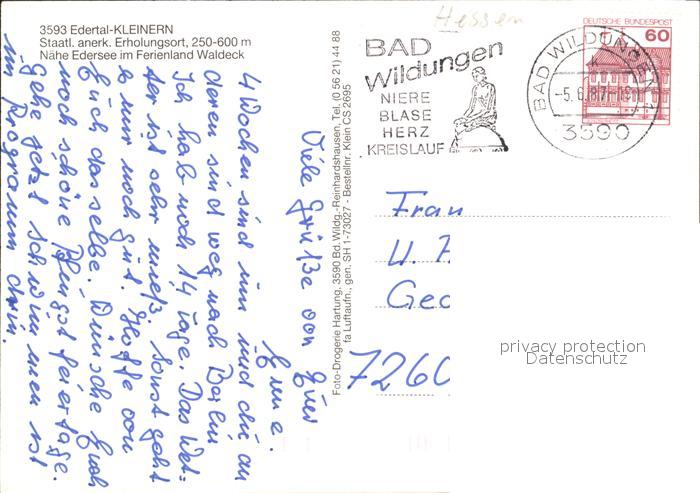 72114124 alte Postkarte Kleinern Edertal Fliegeraufnahme postalisch gelaufen Erhaltung siehe scans KatCode: 11110006635009