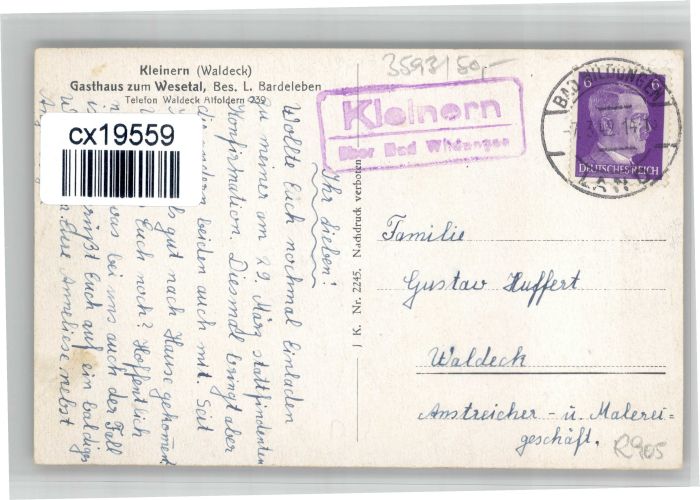 30725336 alte Postkarte Kleinern Gasthaus Wesetal postalisch gelaufen KatCode: 11110006635009
