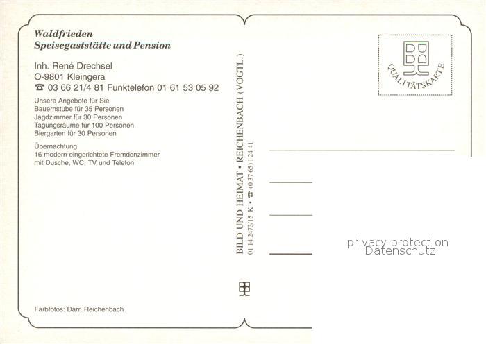 73739836 Kleingera Elsterberg Vogtland Waldfrieden Speisegaststaette Pension Gaststube Zimmer postalisch nicht gelaufen Erhaltung siehe scans [WerneD78] KatCode: 11110014178150