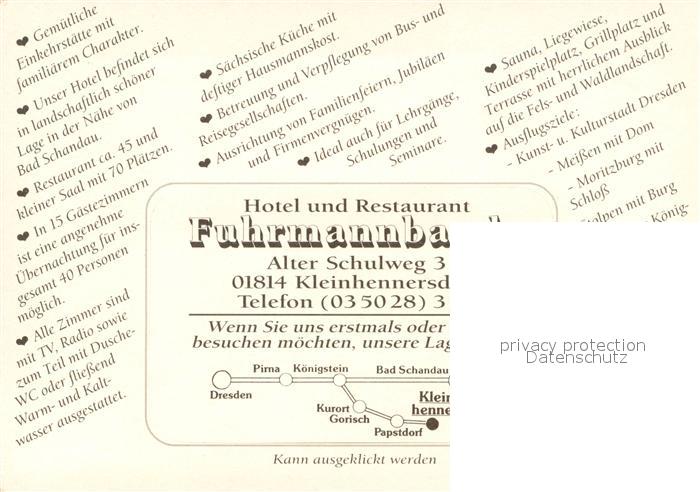 73746454 Kleinhennersdorf Hotel Restaurant Fuhrmannbaude postalisch nicht gelaufen Werbekarte (keine Postkarte) Erhaltung siehe scans [WerneD78] KatCode: 11110014287120