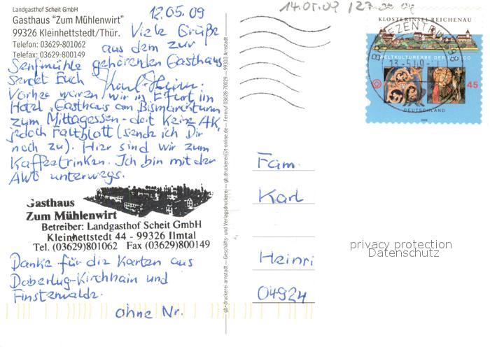 73642438 alte Postkarte Kleinhettstedt Gasthaus Zum Muehlenwirt Senfmuehle postalisch gelaufen Erhaltung siehe scans [WerneD78] KatCode: 11110016070056