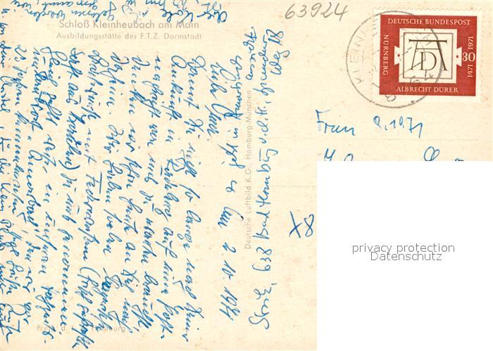 73323040 alte Postkarte Kleinheubach Schloss Fliegeraufnahme postalisch gelaufen Erhaltung siehe scans [FriedD77] KatCode: 11110009676132