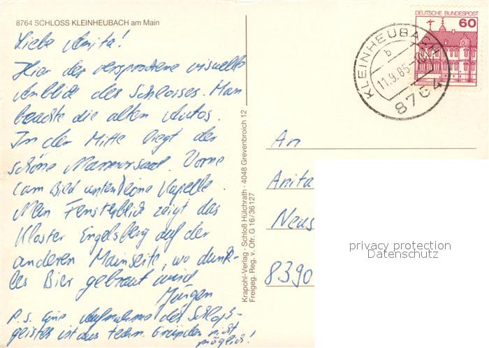73165657 alte Postkarte Kleinheubach Schloss Kleinheubach Fliegeraufnahme postalisch gelaufen Erhaltung siehe scans [WerneD78] KatCode: 11110009676132