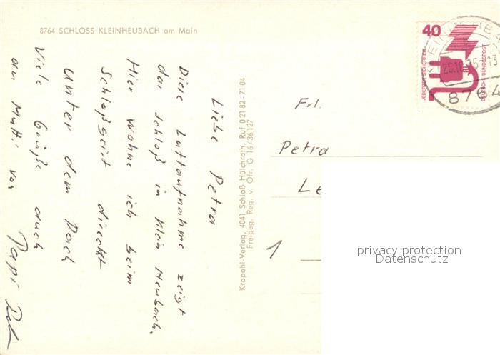 73323566 alte Postkarte Kleinheubach Schloss Kleinheubach Fliegeraufnahme postalisch gelaufen Erhaltung siehe scans [WerneD78] KatCode: 11110009676132