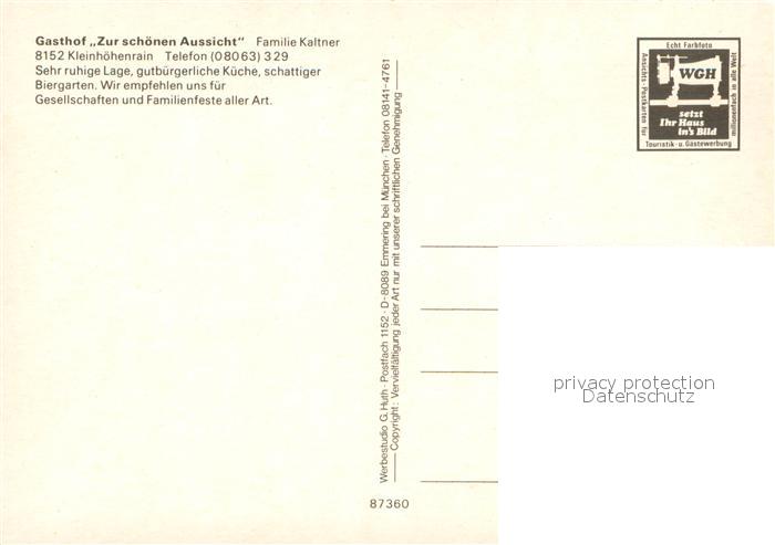 73714971 Kleinhoehenrain Gasthof zur schoenen Aussicht Terrassenansicht postalisch nicht gelaufen Erhaltung siehe scans [LiesaD40] KatCode: 11110009187130