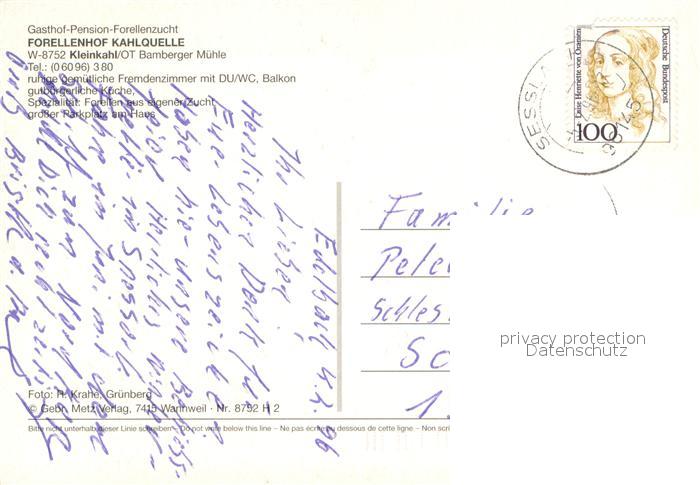 73655664 alte Postkarte Kleinkahl Gasthof Pension Forellenhof Kahlquelle Freibad Fischteiche postalisch gelaufen Erhaltung siehe scans [WerneD78] KatCode: 11110009671135