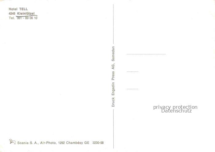14114413 Kleinluetzel Thierstein SO Hotel Tell postalisch nicht gelaufen Fliegeraufnahme Erhaltung siehe scans [FriedD77] Fliegeraufnahme Frie Katcode 11470180545500