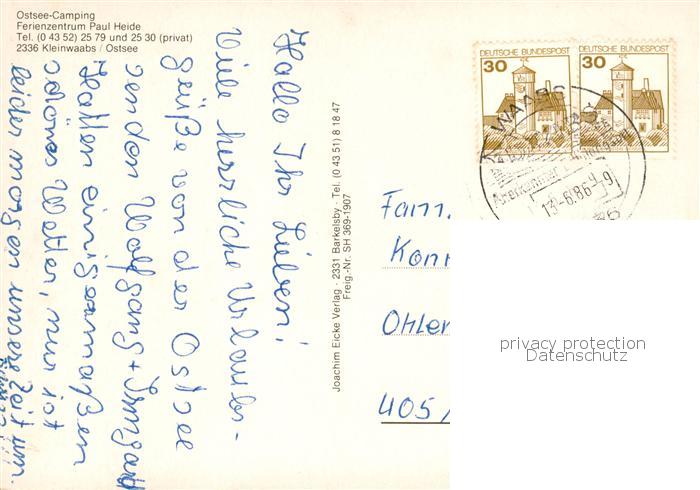 73813775 alte Postkarte Kleinwaabs Ostsee Camping Ferienzentrum Paul Heide postalisch gelaufen Fliegeraufnahme Erhaltung siehe scans [FriedD77] KatCode: 11110001058166