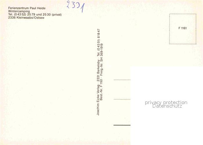 72847080 Kleinwaabs Wintercamping Ferienzentrum Paul Heide postalisch nicht gelaufen Erhaltung siehe scans [NatalD47] KatCode: 11110001058166