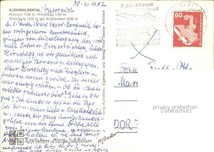 72438929 alte Postkarte Kleinwalsertal Riezlern Hirschegg Mittelberg Widderstein postalisch gelaufen Erhaltung siehe scans KatCode: 11390