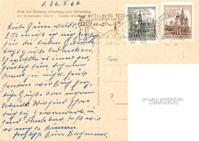 72750782 alte Postkarte Kleinwalsertal Riezlern Hirschegg Mittelberg Widderstein postalisch gelaufen Erhaltung siehe scans [KathaD81] KatCode: 11390