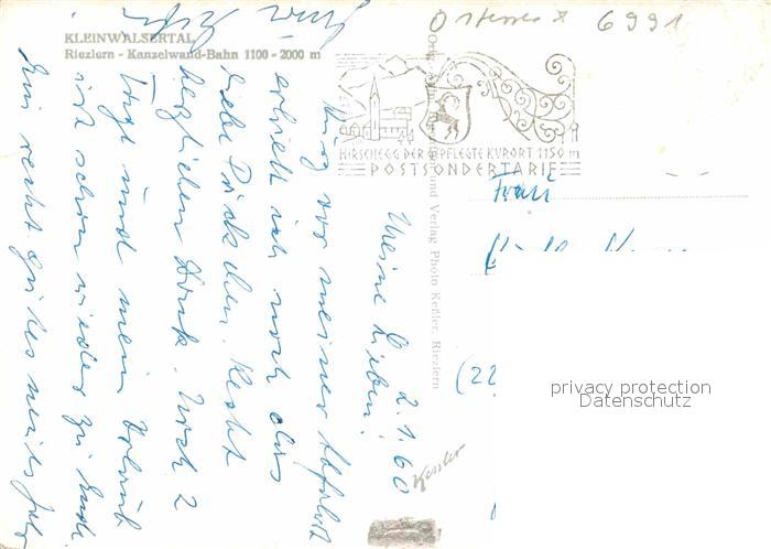 72700755 alte Postkarte Kleinwalsertal Riezlern-Kanzelwand-Bahn postalisch gelaufen Erhaltung siehe scans [LiesaD40] KatCode: 11390