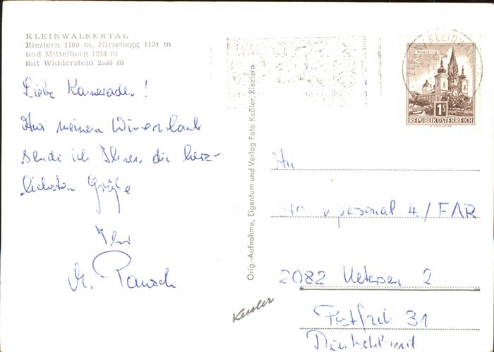 71071114 alte Postkarte Kleinwalsertal Riezlern Mittelberg Widderstein postalisch gelaufen KatCode: 11390