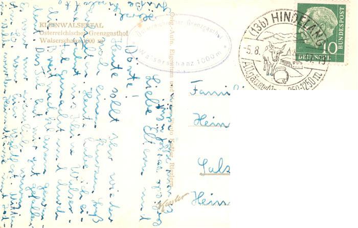 alte Postkarte Kleinwalsertal Vorarlberg AT Walserschanz oesterreichischer Grenzgasthof postalisch gelaufen Erhaltung siehe scans [WerneD78]