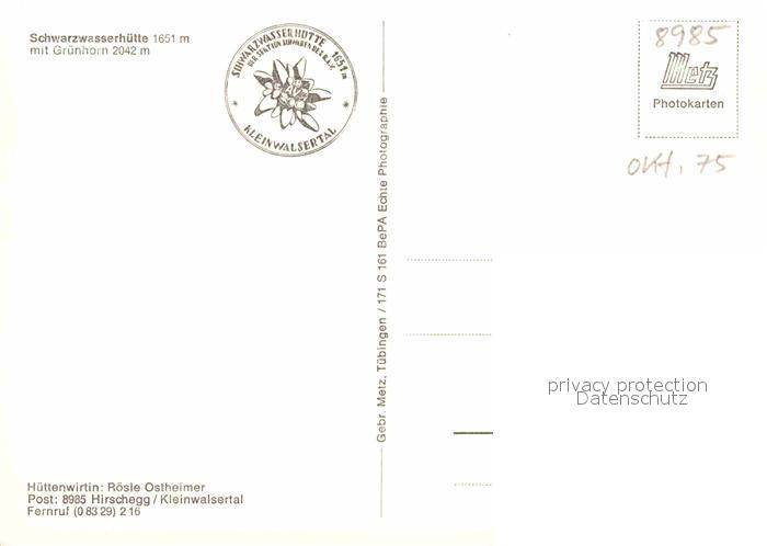 72917914 Kleinwalsertal Vorarlberg Schwarzwasserhuette mit Gruenhorn postalisch nicht gelaufen Erhaltung siehe scans [WerneD78] KatCode: 11390