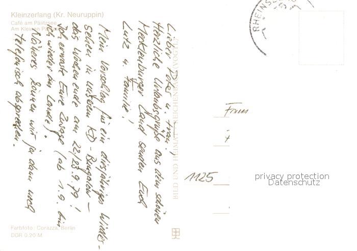 73070067 alte Postkarte Kleinzerlang Cafe Paelitzsee postalisch gelaufen Erhaltung siehe scans [KathaD81] KatCode: 11110012068353