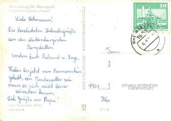 33597886 alte Postkarte Kleinzerlang FDGB Erholungsheim Frieden postalisch gelaufen Erhaltung siehe scans [WerneD78] KatCode: 11110012068353