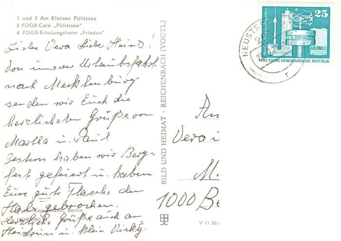 73897620 alte Postkarte Kleinzerlang Rheinsberg Am kleinen Poelitzsee FDGB Cafe Poelitzsee FDGB Erholungsheim Frieden postalisch gelaufen Erhaltung siehe scans [FriedD77] KatCode: 11110012068353