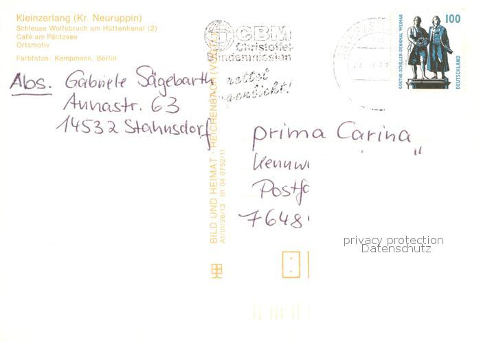 72986471 alte Postkarte Kleinzerlang Schleuse Wolfsbruch am Huettenkanal Cafe am Paelitzsee Ortsmotiv postalisch gelaufen Erhaltung siehe scans [WerneD78] KatCode: 11110012068353