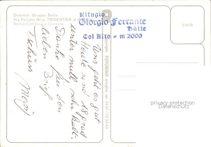 Klettern Bergsteigen Dolomiti Gruppo Sella Tridentina al Pisciadu Colfosco Corvara postalisch nicht gelaufen Erhaltung siehe scans