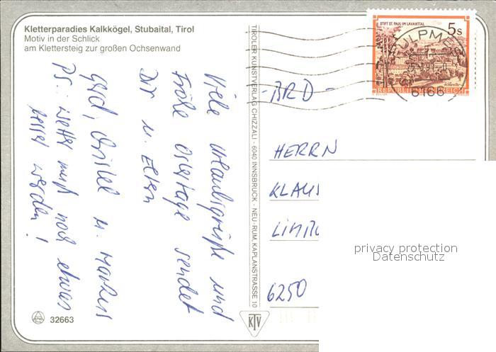 alte Postkarte Klettern Bergsteigen Stubaier Alpen Kalkkoegel Ochsenwand postalisch gelaufen Erhaltung siehe scans