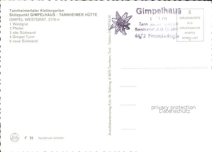 Klettern Bergsteigen Tannheimertal Gimpelhaus Tannheimer Huette postalisch nicht gelaufen Erhaltung siehe scans