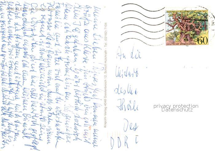 73071933 alte Postkarte Kleve Fussgaengerzone Lohengrin Brunnen am Fischmarkt Bibliothek Denkmal Der Grosse Kurfuerst Schwanenburg postalisch gelaufen Erhaltung siehe scans [FriedD77] KatCode: 11110005154036
