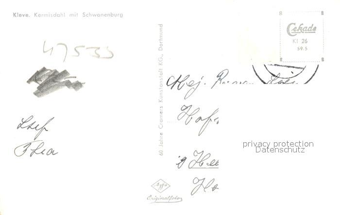 73300154 alte Postkarte Kleve Kermisdahl Schwanenburg postalisch gelaufen Erhaltung siehe scans [PaolaD17] KatCode: 11110005154036