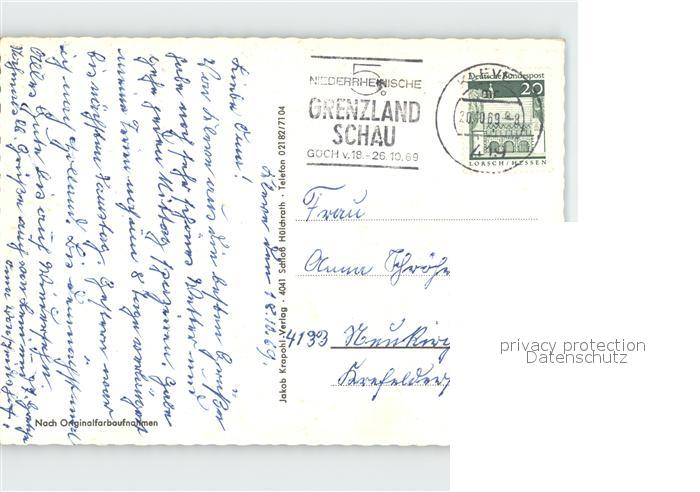72203757 alte Postkarte Kleve Moritzpark Schwanenburg Stadthalle Rheinbruecke Wappen postalisch gelaufen Erhaltung siehe scans KatCode: 11110005154036