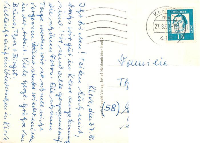 73901901 alte Postkarte Kleve Niederrhein Hafen Burg Brunnen Amphitheater Schwanenburg Moritzpark Schloss Kermisdahl postalisch gelaufen Erhaltung siehe scans [FriedD77] KatCode: 11110005154036