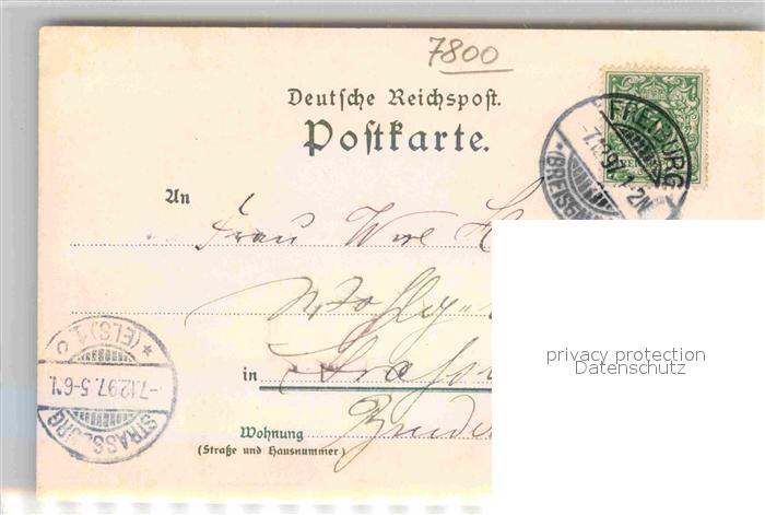 alte Postkarte Kley Freiburg im Breisgau Kaufhaus Markt Litho postalisch gelaufen Erhaltung siehe scans [PaolaD17]