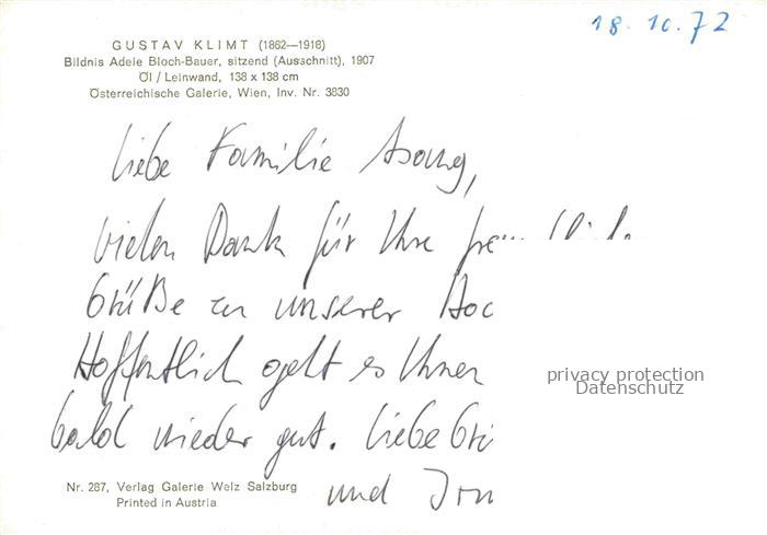 74091789 KLIMT Gustav (1862-1918) Kuenstlerkarte Adele Bloch Bauer oel Leinwand Wien postalisch nicht gelaufen Erhaltung siehe scans [SanaeD93] KatCode: 22240000003200