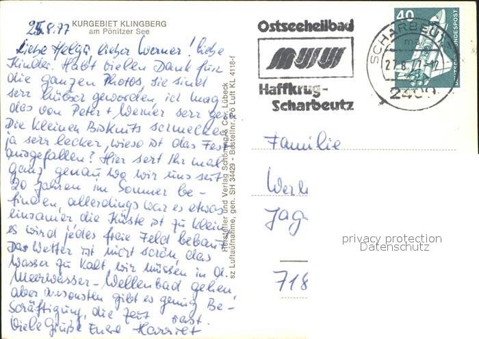 71920881 alte Postkarte Klingberg am P?nitzer See postalisch gelaufen Erhaltung siehe scans KatCode: 11110001055044