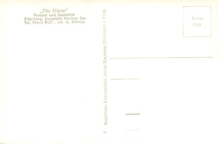 73899597 Klingberg Die Huette Pension und Gaststaette postalisch nicht gelaufen Erhaltung siehe scans [FriedD77] KatCode: 11110001055044