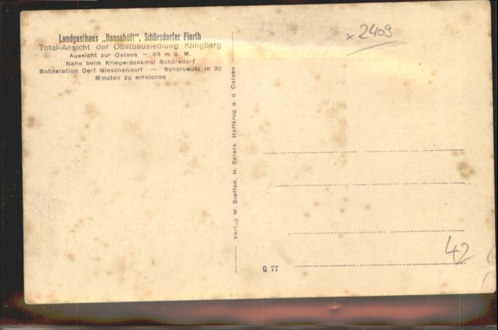 40848089 Klingberg Gasthaus Hansahöft Schürsdorfer Fierth Gleschendorf Scharbeutz * KatCode 11110001055044