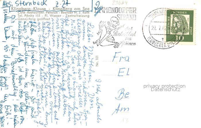 73652734 alte Postkarte Klingberg Klingberg-Klause am See Schwaene postalisch gelaufen Erhaltung siehe scans [FriedD77] KatCode: 11110001055044