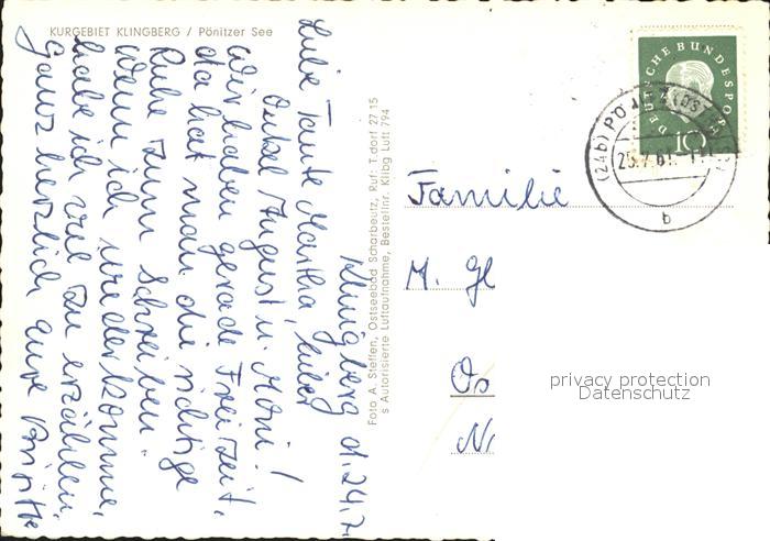 72356804 alte Postkarte Klingberg Kurgebiet Poenitzer See Fliegeraufnahme postalisch gelaufen Erhaltung siehe scans KatCode: 11110001055044