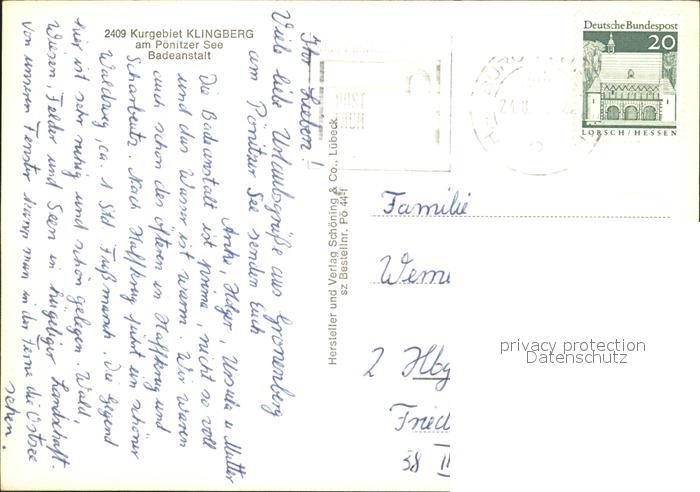 72298991 alte Postkarte Klingberg Poenitzer See Badeanstalt postalisch gelaufen Erhaltung siehe scans KatCode: 11110001055044
