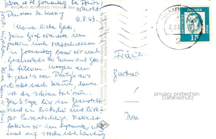 33612158 alte Postkarte Klingberg Poenitzer See Kurgebiet Fliegeraufnahme postalisch gelaufen Erhaltung siehe scans [FriedD77] KatCode: 11110001055044