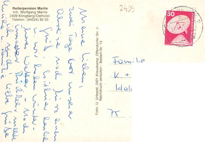 73940396 alte Postkarte Klingberg Reiterpension Marlie postalisch gelaufen Erhaltung siehe scans [FriedD77] KatCode: 11110001055044