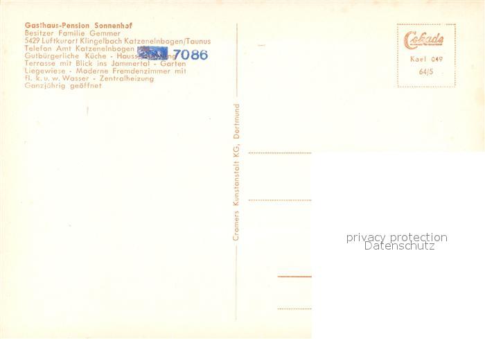 73152102 Klingelbach Katzeneinbogen Gasthaus Pension Sonnenhof postalisch nicht gelaufen Erhaltung siehe scans [KathaD81] KatCode: 11110007141073