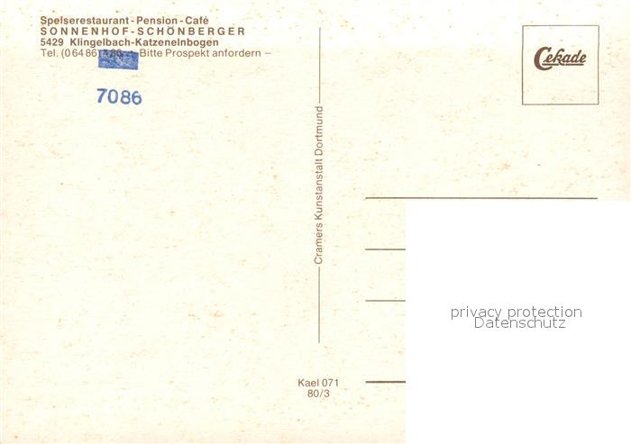 73152200 Klingelbach Restaurant Pension Cafe Sonnenhof postalisch nicht gelaufen Erhaltung siehe scans [KathaD81] KatCode: 11110007141073