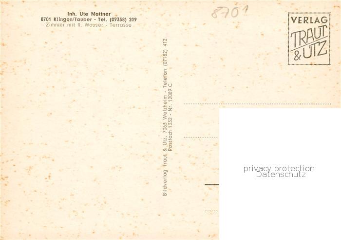 73852786 Klingen Bieberehren Gasthaus zur Romantischen Strasse Terrasse Gaststube postalisch nicht gelaufen Erhaltung siehe scans [WerneD78] KatCode: 11110009679118