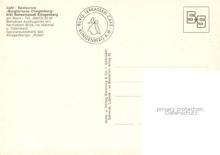 73213851 Klingenberg Main Brunnen Burgruine Cafe Restaurant Burgterrasse Ausflugsziel postalisch nicht gelaufen Erhaltung siehe scans [FriedD77] KatCode: 11110009676134