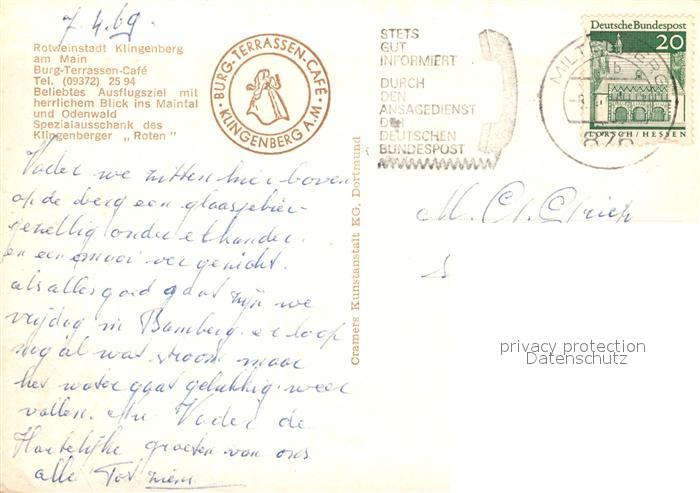 72941704 alte Postkarte Klingenberg Main Burg Terrassen Cafe Panorama postalisch gelaufen Erhaltung siehe scans [WerneD78] KatCode: 11110009676134