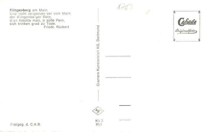 73914578 Klingenberg Main Fliegeraufnahme postalisch nicht gelaufen Erhaltung siehe scans [WerneD78] KatCode: 11110009676134