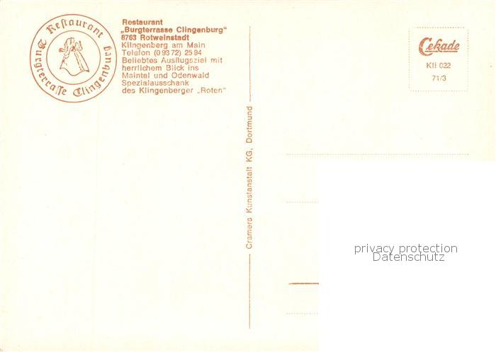 73777417 Klingenberg Main Restaurant Burgterrasse Clingenburg Blick in Maintal und Odenwald postalisch nicht gelaufen Erhaltung siehe scans [FriedD77] KatCode: 11110009676134