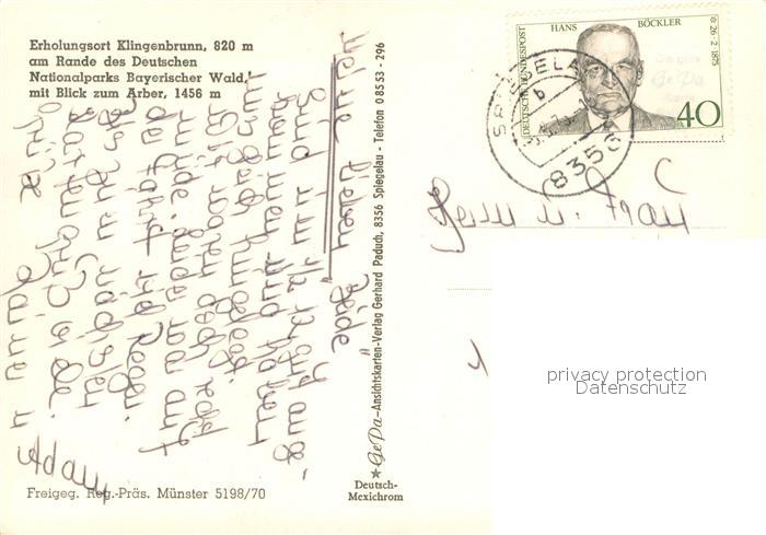 73667207 alte Postkarte Klingenbrunn Fliegeraufnahme mit Arber postalisch gelaufen Erhaltung siehe scans [WerneD78] KatCode: 11110009272149